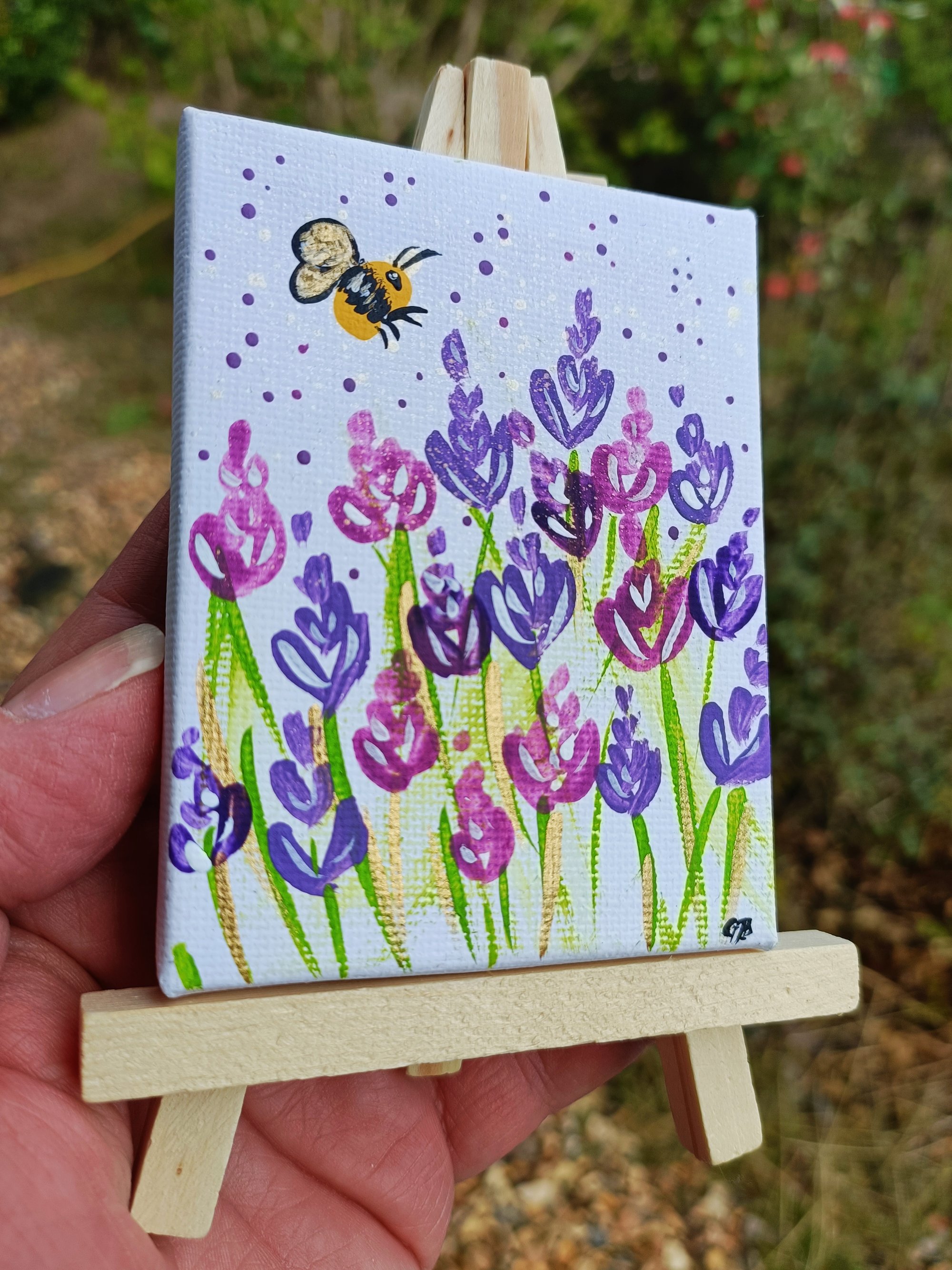 Original art on mini canvas which measures approx 7 x 9 cm plus wooden stand