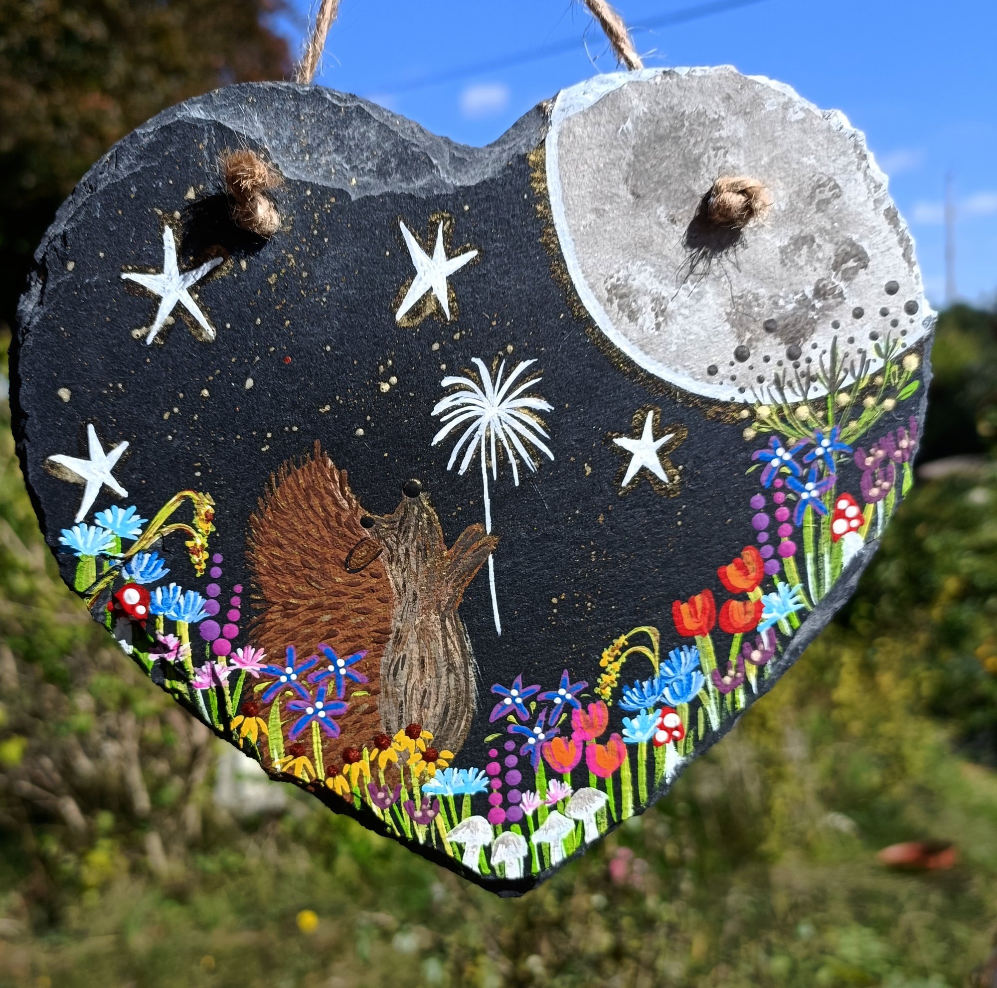 Hand painted slate Approx 15cm Painted on one side only A message can be painted on the back, depending on length of message this would be an additional £2 Warning slate may have sharp edges handle with care Indoor use only Ready to post