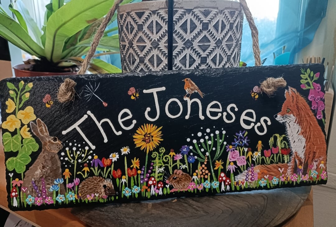 30cm x 20cm slate to fix to a flat surface with 4 screw holes, one in each corner.